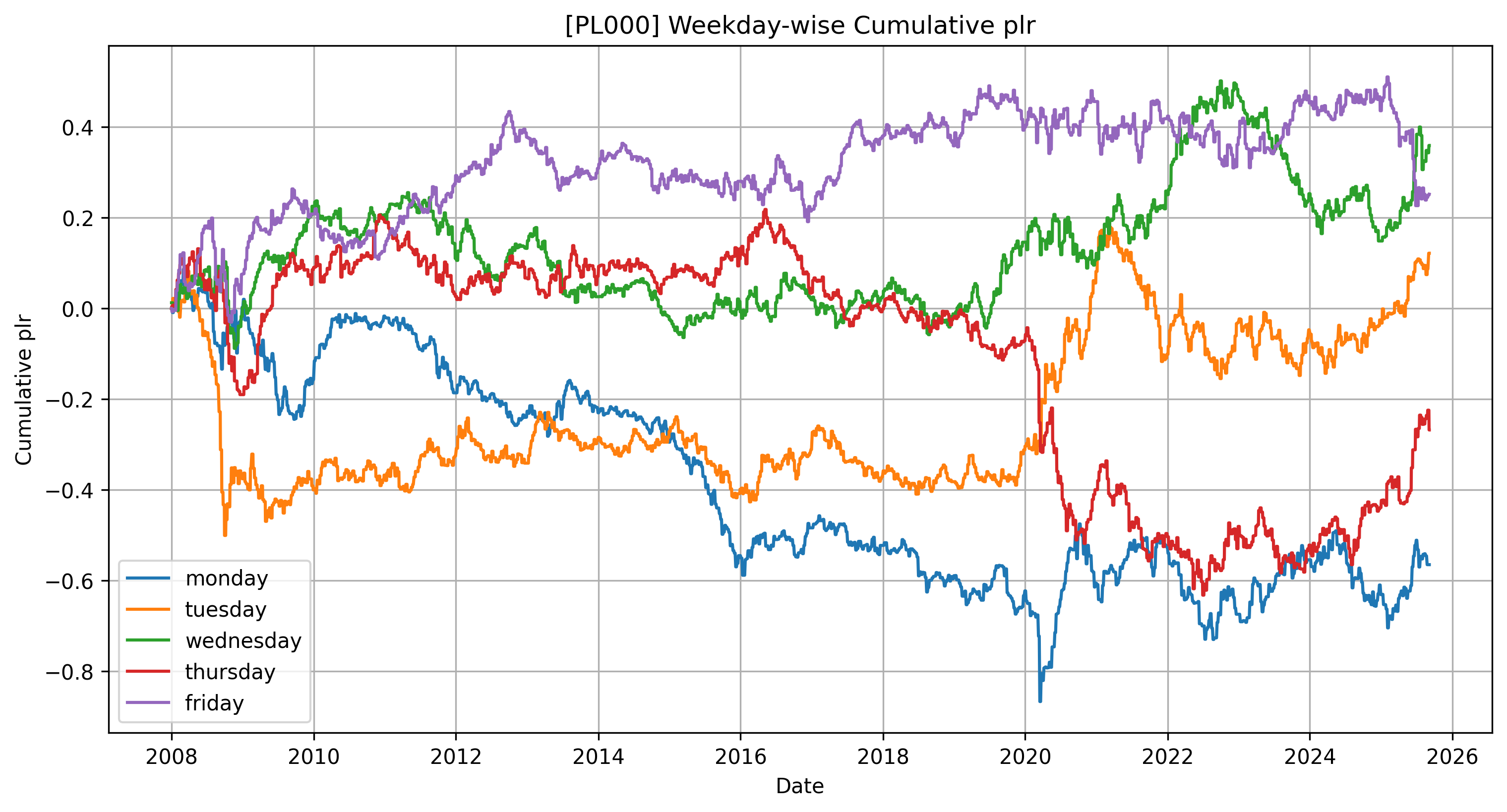 해당 요일의 시가와 익일 시가 사이의 로그수익률