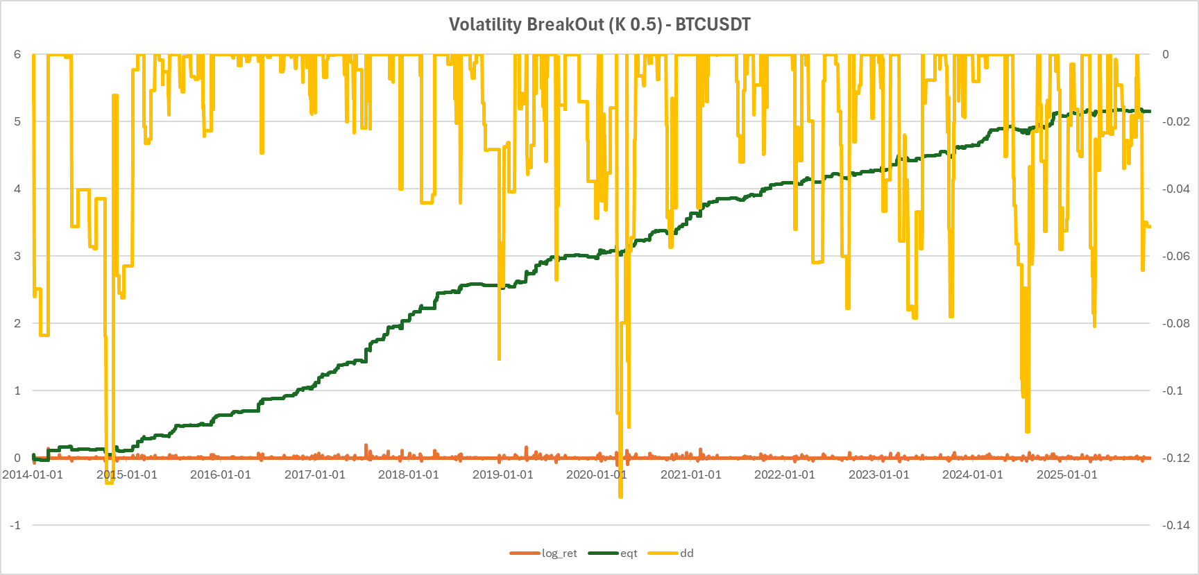 k를 0.5 적용했지만 Range를 정의하는 방법에는 몇 가지 튜닝을 거쳤고 약간의 추세필터를 가미했다.