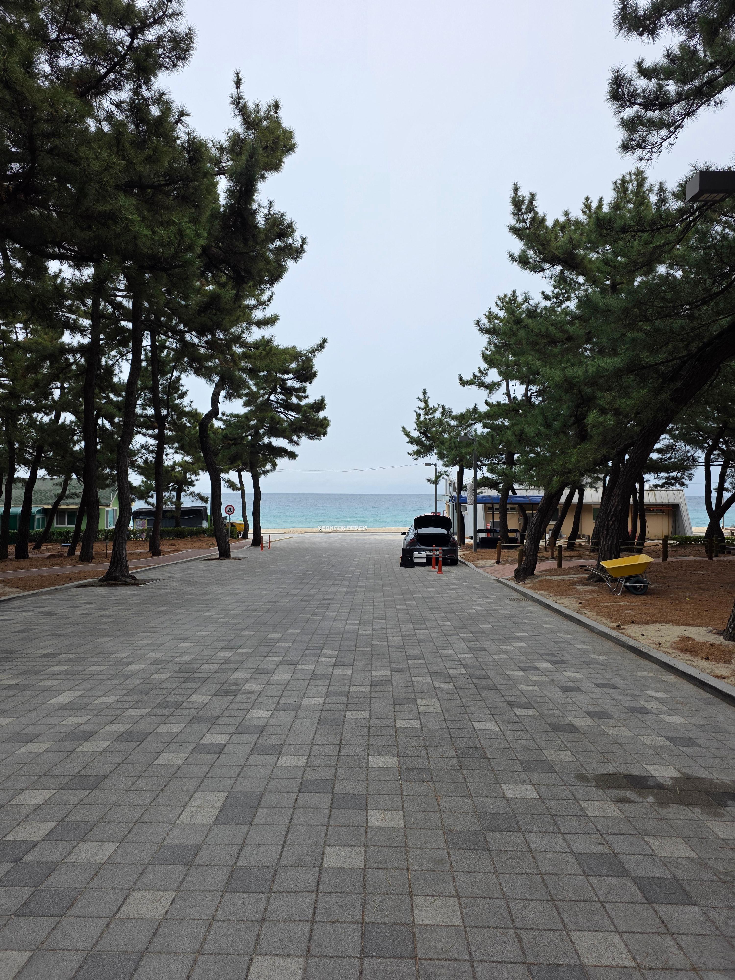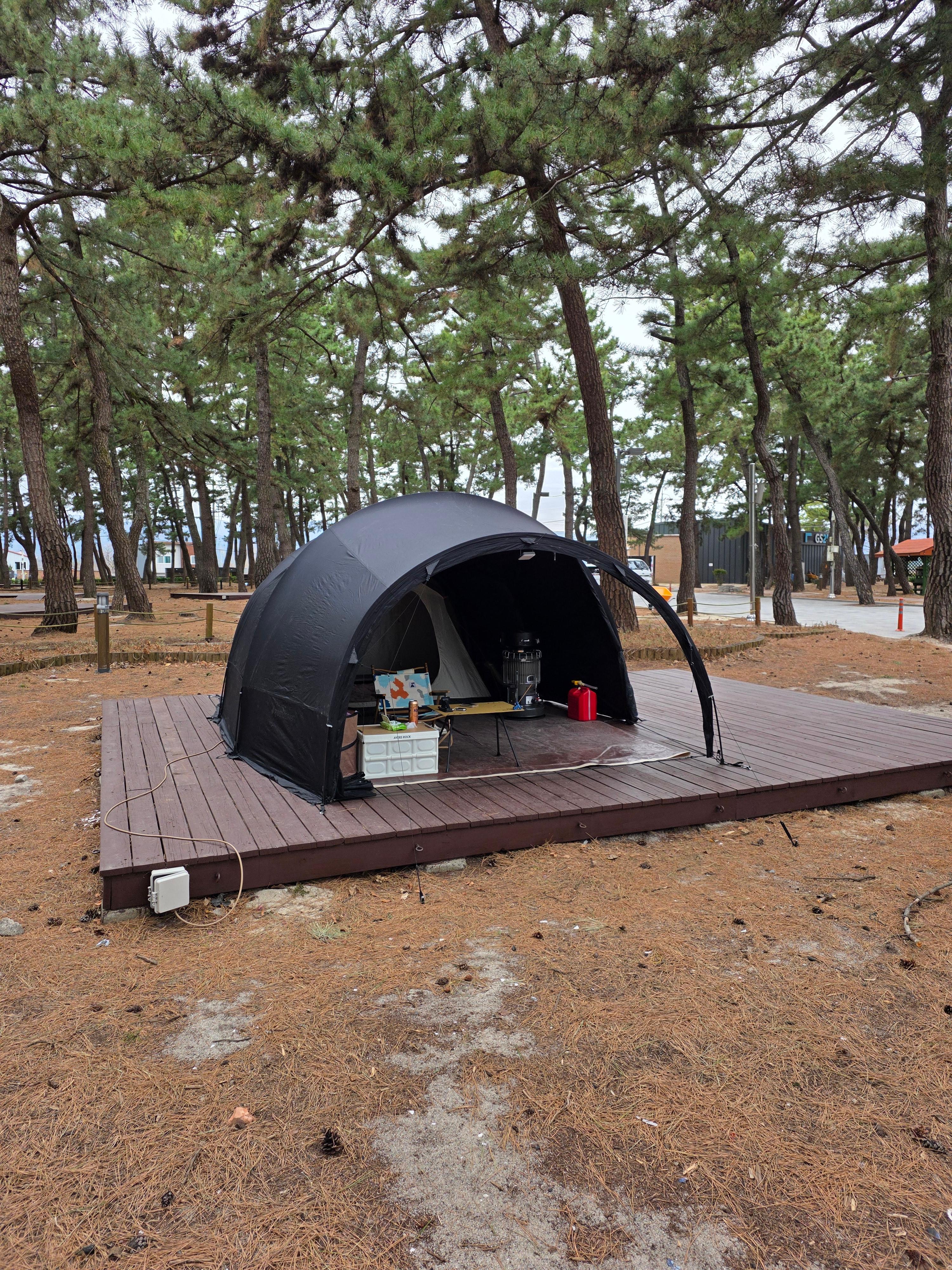 오늘은 바람도 약하고 날씨도 적절하다. 제일 좋아하는 A109번 자리를 예약했는데 이 자리가 통로를 낀 가운데 위치하고 있어서 은근히 바다가 잘 보이고 바로 옆 자리에 주차를 할 수 있어서 짐을 나르는 거리가 짧다. 바다 앞 1열이 아니라 경쟁이 치열하지 않다는 점도 장점.